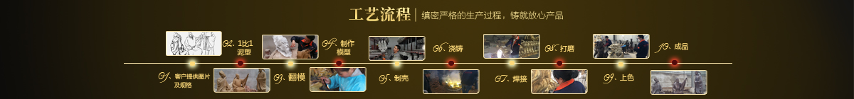 制作一件完美的鑄銅雕塑,最重要的步驟就是制作泥塑模型,然后再用工業(yè)硅膠拓印、翻模。所以泥塑的姿態(tài)、神情生動與否直接影響最終銅雕塑的品質(zhì)。所以我廠一直對泥塑模型的制作格外重視。我廠以雕塑為本,以藝術(shù)為根,挾中華文化之傳統(tǒng),偕歐陸藝術(shù)之風(fēng)韻,風(fēng)格獨特,盡顯淋漓盡致。我們本著大膽創(chuàng)新、勇于突破的精神,以追求卓越為導(dǎo)向,堅持寧缺勿濫為原則,并可依照您提供的要求,為您量身設(shè)計制作。我廠人才濟濟,有智慧嚴謹?shù)墓芾戆嘧樱姸嗄贻p充滿激情、充滿創(chuàng)意的專業(yè)設(shè)計團隊、有專業(yè)技術(shù)精湛的雕塑制作人才和專業(yè)的施工隊伍。他們不僅具深厚的文化藝術(shù)底蘊,更汲取當(dāng)代雕塑精華,博采眾家之長,作品既有嚴肅莊重寫實題材,也有輕松前衛(wèi)的抽象題材,表現(xiàn)手法上浪漫主義中不乏樸實,現(xiàn)實主義中蘊涵著激情,設(shè)計理念貫穿古今、融匯中西,深刻詮釋著藝術(shù)的精髓,把古典主義和后現(xiàn)代主義完美的融合,將雕塑藝術(shù)演繹為力的凝聚、美的體現(xiàn),讓人們感受到的不僅是一種藝術(shù)的浪漫與優(yōu)雅、粗獷與悲壯、更是豐富的優(yōu)秀藝術(shù)寶藏和文化傳統(tǒng),讓您在藝術(shù)與文化中穿流,在時空中飄蕩,使靈魂在藝術(shù)的海洋洗禮。 MORE+